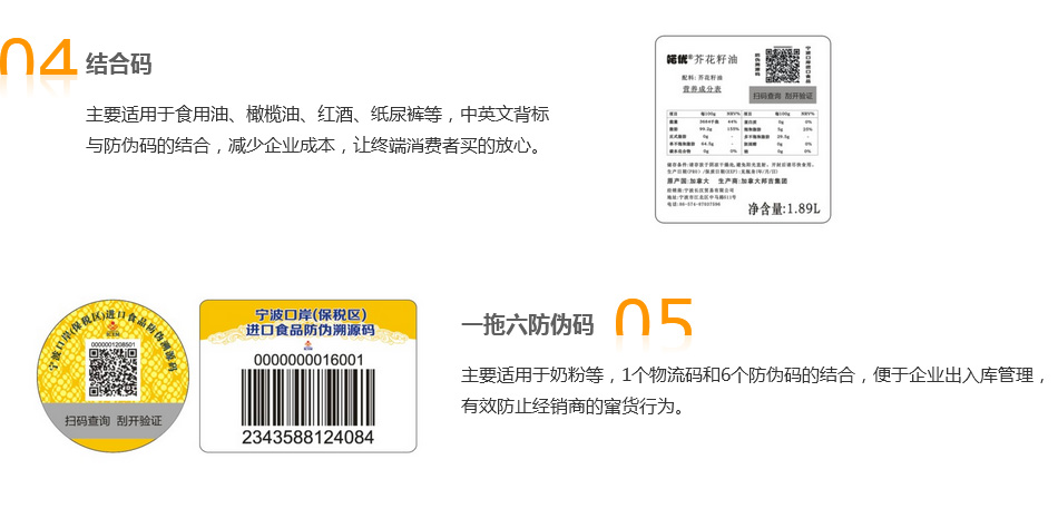 防伪码品类介绍及典型应用: